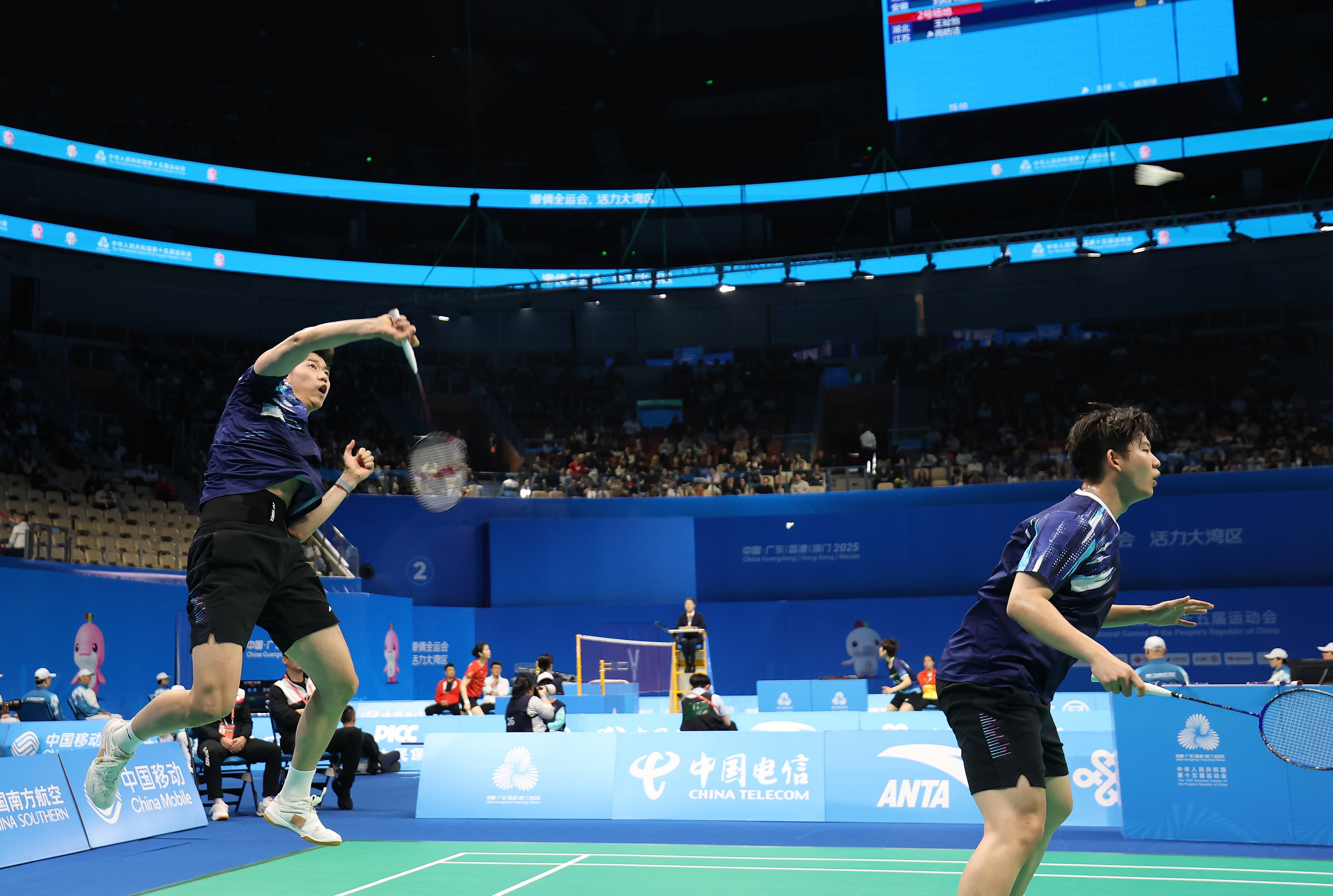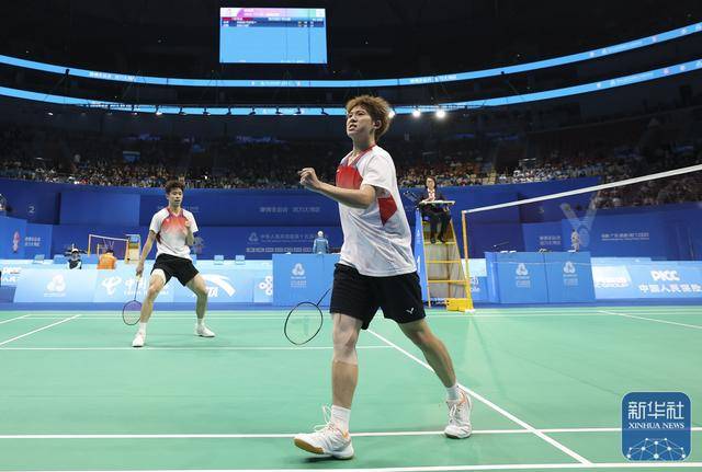 当日,第十五届全国运动会羽毛球男子双打半决赛在广东深圳举行。